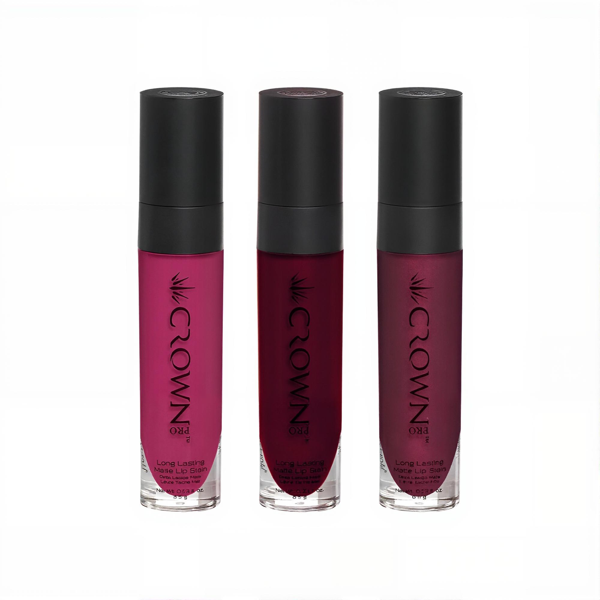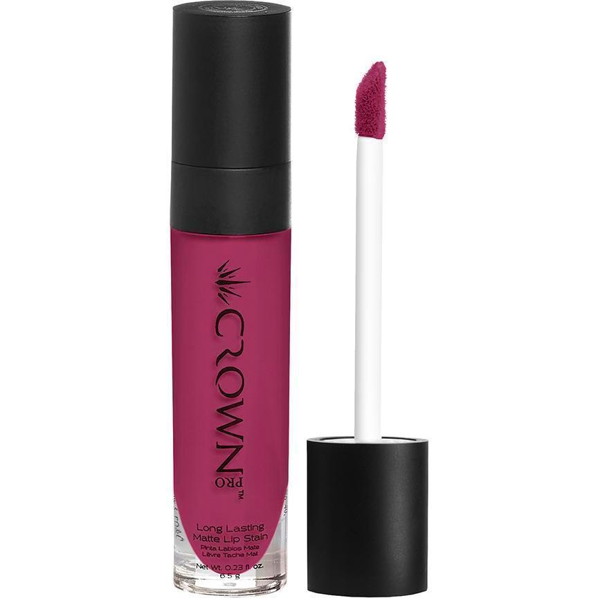 Designed for professional makeup artists, the Crown Pro Long Lasting Lip Stains stay on the lips all day long with no bleeding or streaking of color and eliminate the need for constant touch ups. They are soft on the lips and feel naked to the touch, making them perfect for those who like drama and intensity in their color, but a lighter and softer feel on the lips. The finish is completely matte.